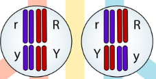 Ont peut voire ici les deux posibiliter lors de la premiere division de la méiose. Une ou les gène d’un parent voyage ensemble, et l’autre ou les gène sont switcher.