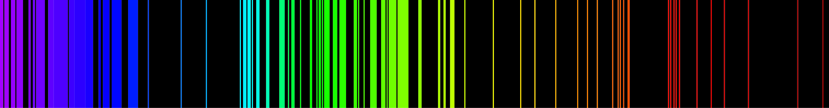 Ce spectre est discontinue. Il y a certaine énergie de photon qui ne sont pas émise. Ont peut obetnir ce spetre en ionisant le materieux desirer, par example a basse-pression dans un tube et un arc electrique.