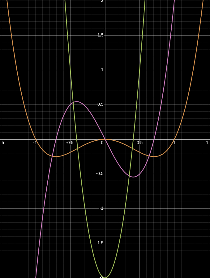 Ont peut voir que les endroits ou change de signe sont les endrois ou passe de croissante a décroisante. One nomme ceci le test de la dériver seconde
