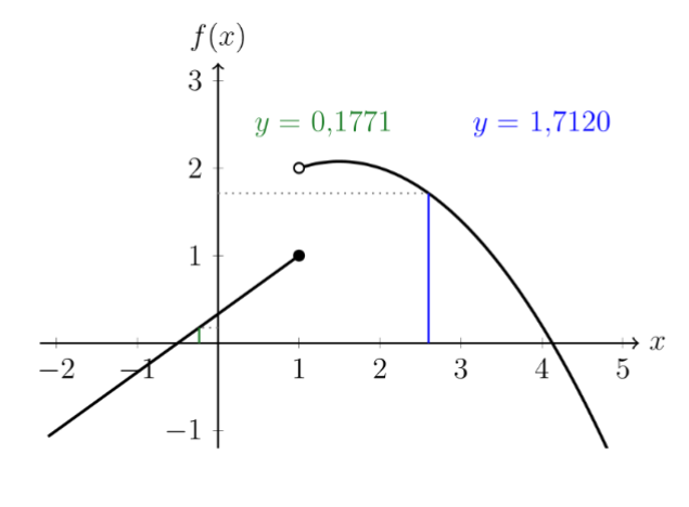 Dans un graphique discontinue tel celui ci, ont approche de de valeur differente selon le côter, donc il n’y a pas une seule valeur de limite bien defenit, ont dit donc que la limite n’existe pas (). Ont peut également noter que l’ont peut approche le point non-defenit vers le haut. Même si il est vide.