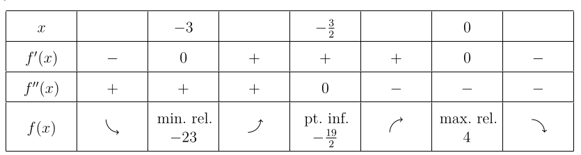 - ont fait une premire ranger avec les valeurs de qui sont soit critique, soit d’inflection, avec des colones vides pour les intervals entres eux. La premiere et la derniere colone sont l’infinit