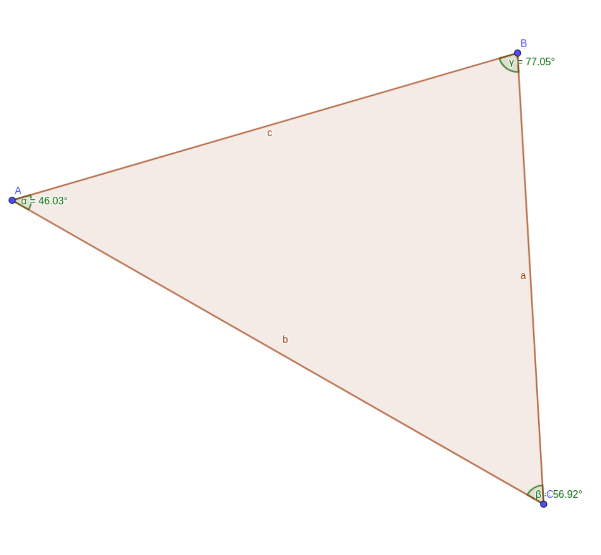 La loi du sinus s’aplique sur tout les triangles. Pour le triangles des point ABC et les côter abc. La loi du sinous est :