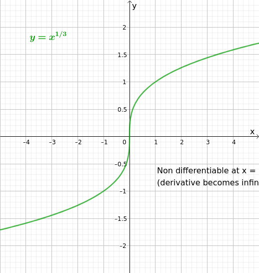 - Plus formelement, ont dit que le deriver de la fonction n’est pas continue. Encore plus formelement, la limite de n’est pas defenit pour la dérivée