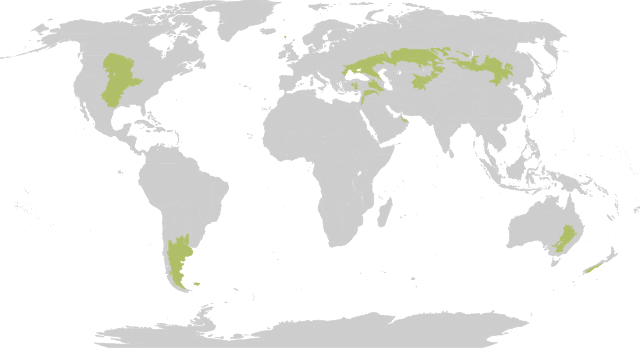 Vaste étendue d’herbe et de plantes a fleur. Tres peut d’arbes et arbustre en raison d’une manque de précipitation.