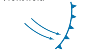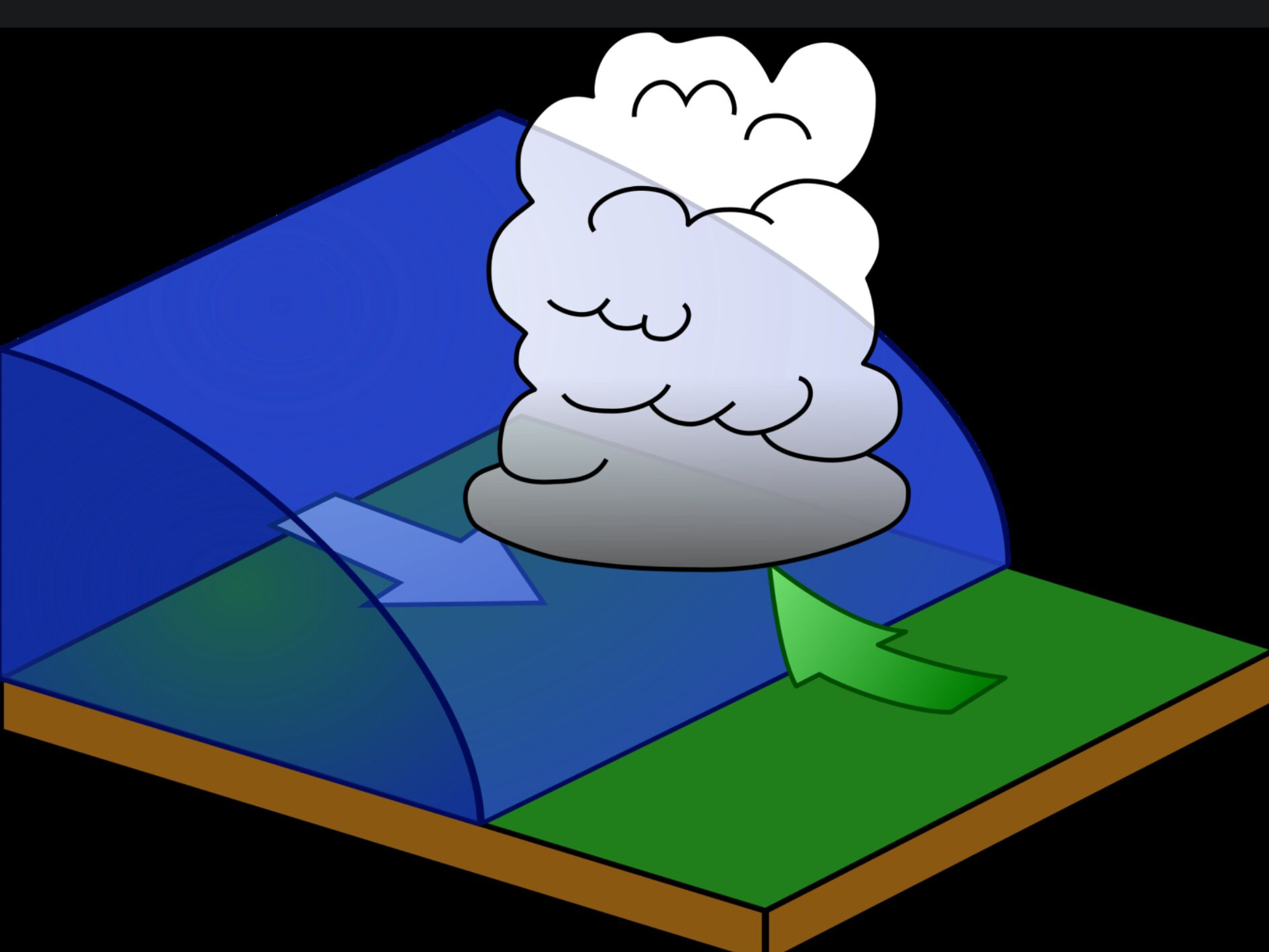 Une front foid est quand une masse d’air froid rentre en contact avec une masse d’air chaud, l’air froid passe alors en dessous de l’air chaud. La montée rapide de l’air chaud causes une condensation rapide de la vapeur d’eau contenue. Cela cause la formation de nuages épais, souvent acompagner par de forte précipitation et de grand vents. Le symbole utiliser pour les front froid est :