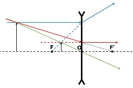Attention, dans une lentille divergente, le rayon passe encore par , mais est du coter de l'objet, donc c'est sont prolongement.