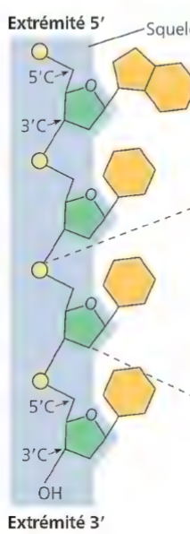 Les deux côter de l’ARN et l’ADN sont nommer les extremité et . C’est ce qui donne la polariter de la molecule. Les atomes de carbone dans le monomere sont numeroter. Le liens se font tuojour entre le carbone et